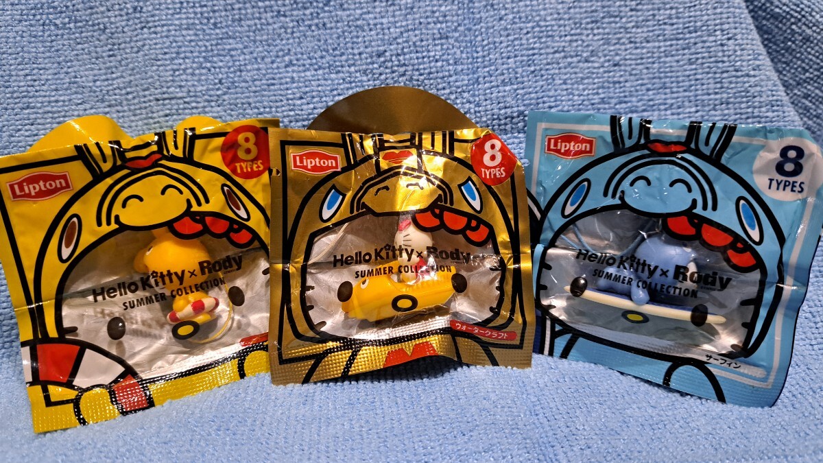 > ハロー キティー 『Hello Kitty × Rody』サマー コレクション 3セット Lipton オマケ サンリオ フィギュア レア おもちゃ ストラップ