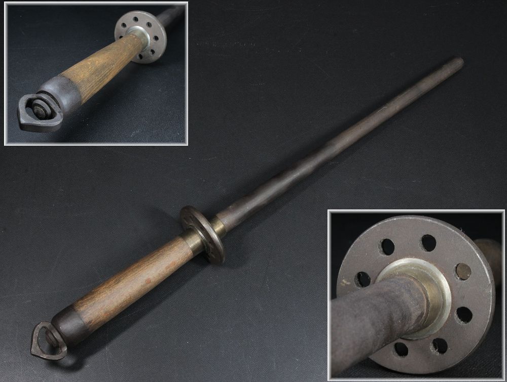 - 古い 鉄製 九曜文鍔付き 棒十手 十手 兜割 鉢割 全長約41cm 重さ約500g