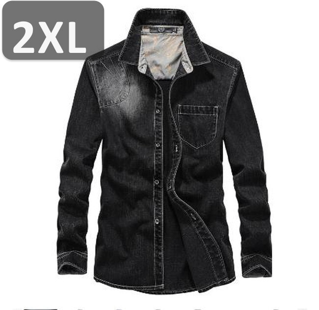 - メンズ 長袖 デニム シャツ ブラック 2XL 長袖 デニム シャツ 春秋【n187】