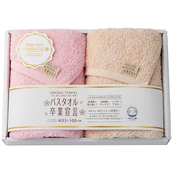 > 本多タオル バスタオル卒業宣言 ロングフェイスタオル2枚セット ピンク×モカ SGS-3000/P×M(ピンク×モカ)