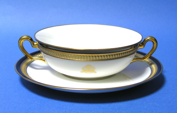- ◎大倉陶園 特注品 瑠璃エンボス 綺麗なスープカップ&ソーサー◎c新品同様