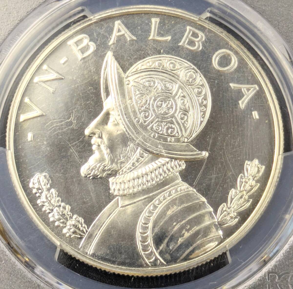 > スペインの探検家 最高鑑定 1970年 中南米パナマ共和国 PCGS PR68 バルボア銀貨 バスコ・ヌニョス・デ・バルボア BALBOA モダンコイン