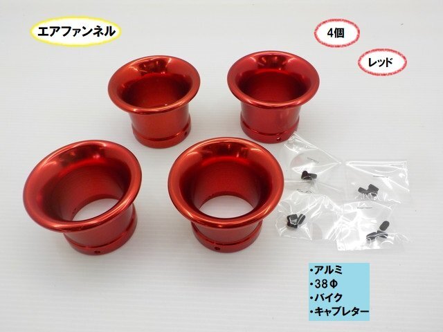 - TH58★☆アルミ エアファンネル(38Φ)(バイク キャブレター)4個セット レッド(CB400SF Ninja SR400 250TR モンキー GB350)