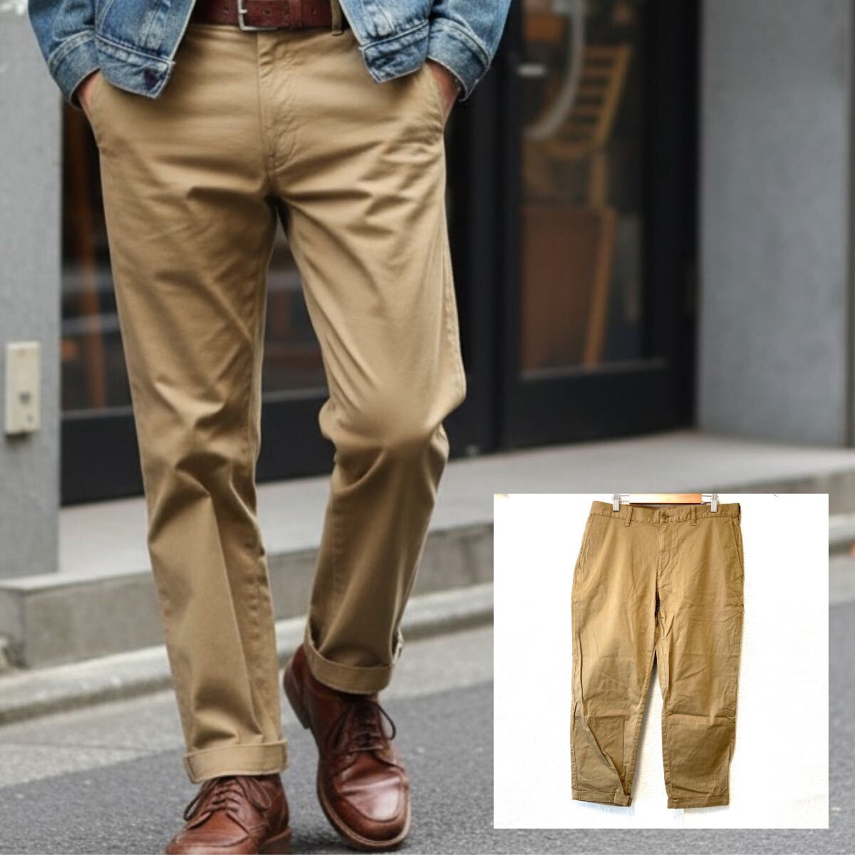 > 王道カジュアルアイテム!【UNIQLO】ユニクロ クロップド丈 チノパン ストレッチ アメカジ アンクル 爽やか ブラウン ウエスト82/Y38116UU