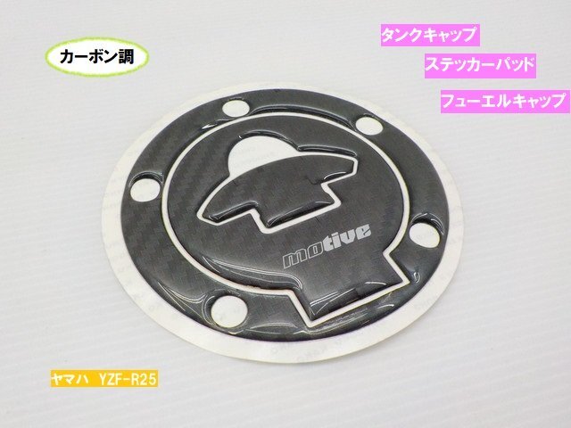 > TH35★☆ヤマハ カーボン調タンクキャップ ステッカーパッド(フューエルキャップ)YZF-R25(ヤマハ・YZF-R25)