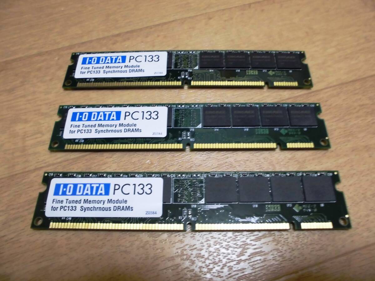 - IO DATA PC133 両面実装 256MBメモリ×3枚 動作確認済