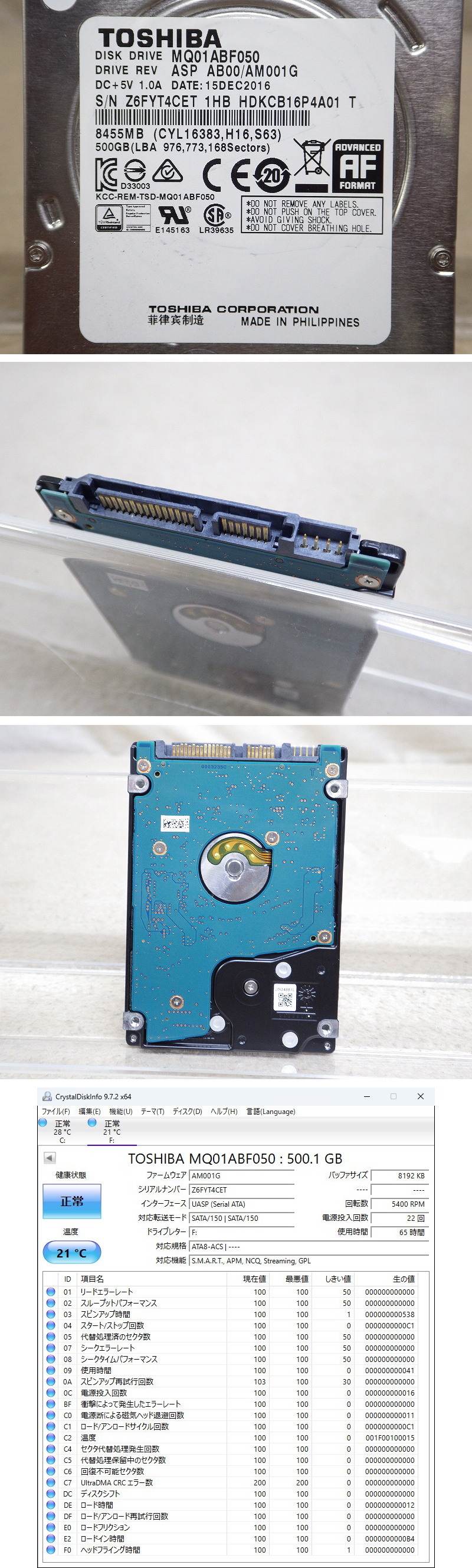 - Kネま2193 東芝/TOSHIBA 2.5インチ SATA 内蔵HDD 500GB MQ01ABF050 パソコン周辺機器 PCパーツ ハードディスク