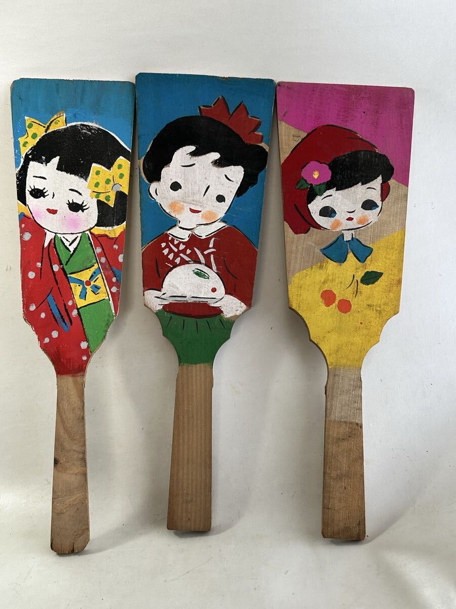 - 木製 子供用 羽子板 当時物 合計3点 昭和レトロ 正月