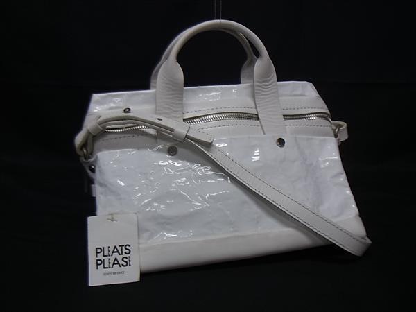 > 1円 ■美品■ PLEATS PLEASE プリーツプリーズ パテントレザー クロスボディ ハンドバッグ ショルダー 斜め掛け ホワイト系 FS7490