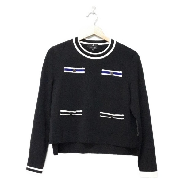> ランバンコレクション LANVIN COLLECTION 長袖セーター/ニット サイズ38 M - 黒×白×ブルー レディース クルーネック 美品 トップス