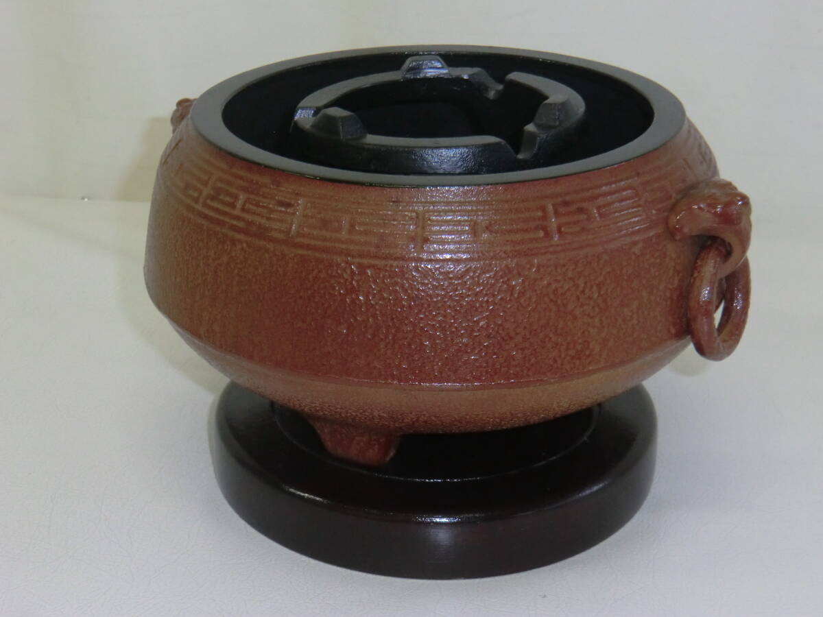 - 鋳鉄灰皿火鉢 ミニ火鉢 ミニ五徳 外径215mm 内径140mm 高さ130mm 重さ2950g 南部鉄器 風炉 茶道具 鉄製 火鉄器