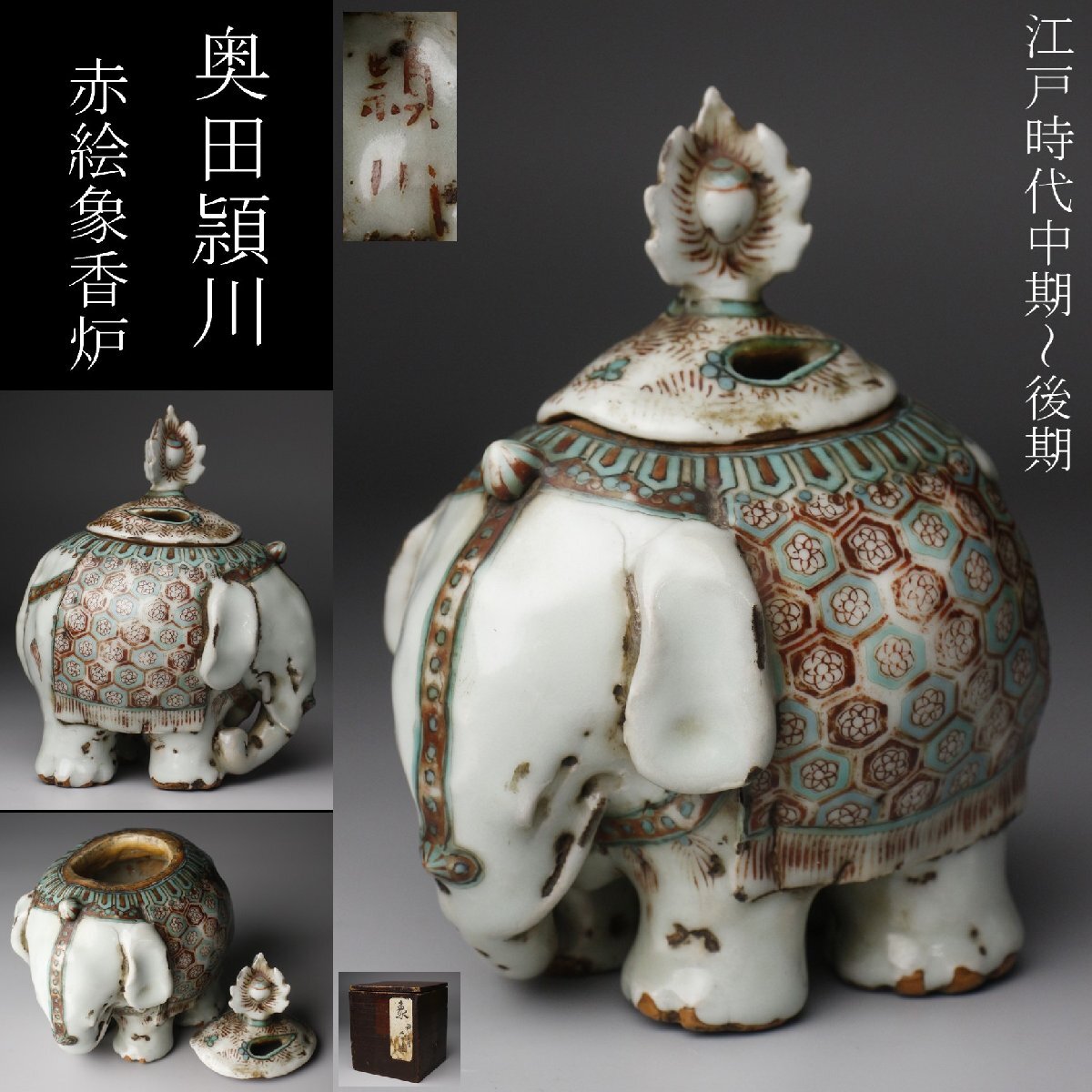 - 【LIG】江戸時代中期~後期 奥田頴川 赤絵 象香炉 古美術品 時代箱 旧家蔵出品 [.YO]25.11