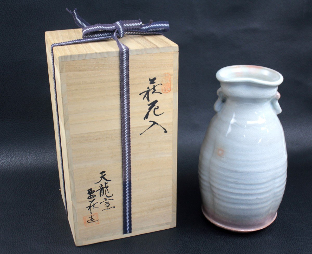 > 服部 要萩 耳付花入 花器 萩焼 花瓶桜 陶器 陶磁器 共箱あり 共箱 骨董品 箱付 レトロ アンティーク コレクター