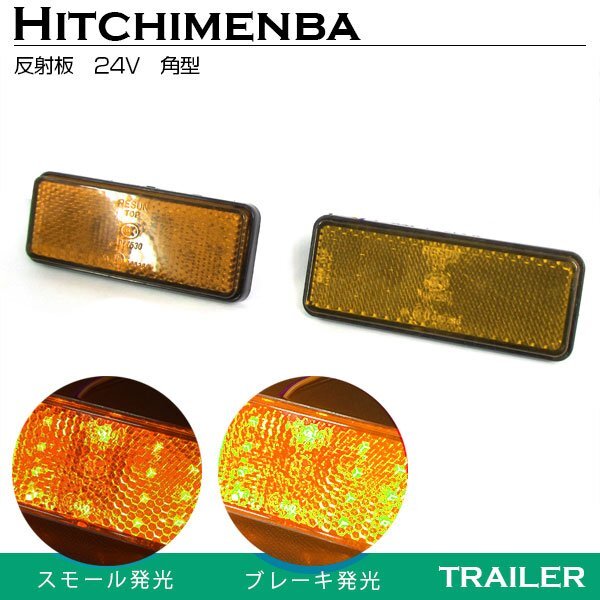 - 汎用 光る LEDリフレクター 反射板 角型 24V アンバー 橙 1セット2個入り 左右 サイドマーカー トラック トレーラー けん引