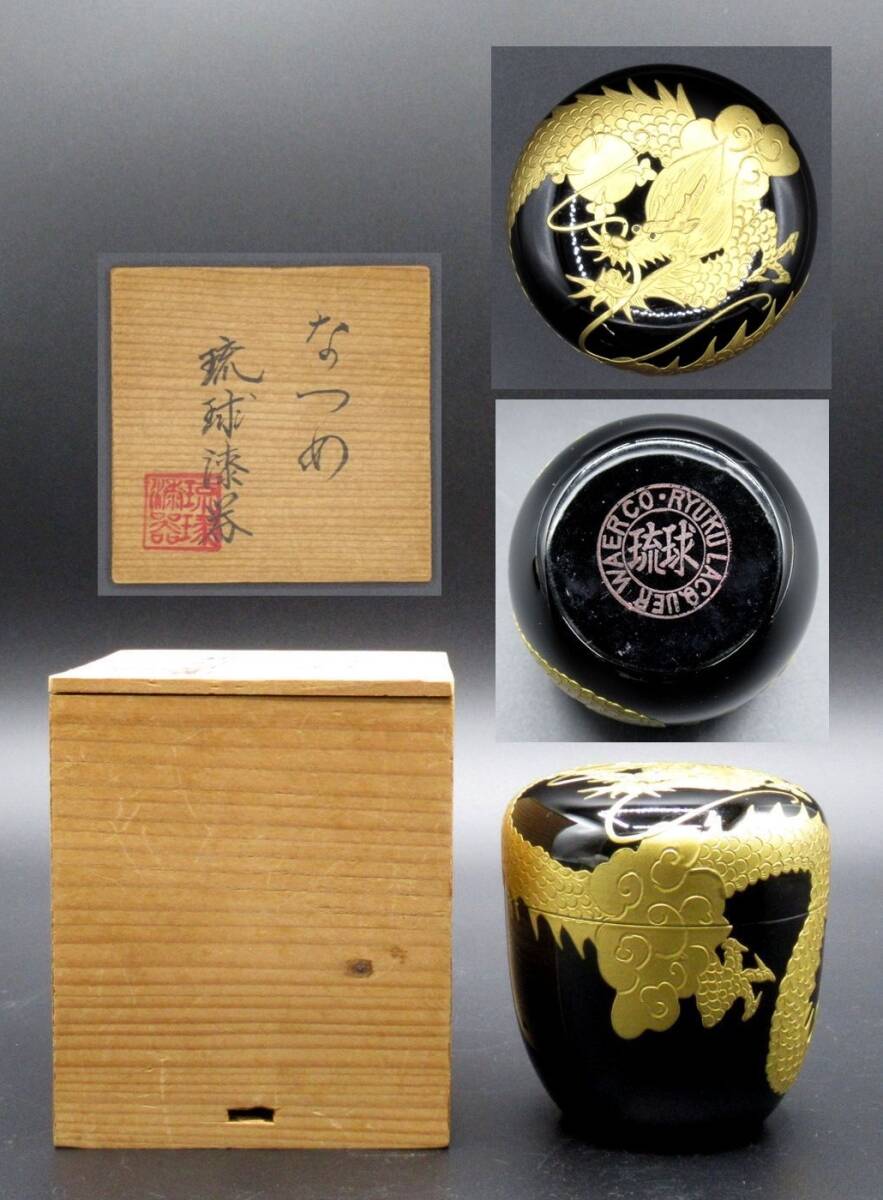 - 茶a『 琉球漆器 なつめ 共箱 』*棗. 龍. 茶道具. 茶入. 沖縄. 茶器. Ryukyu Lacquerware