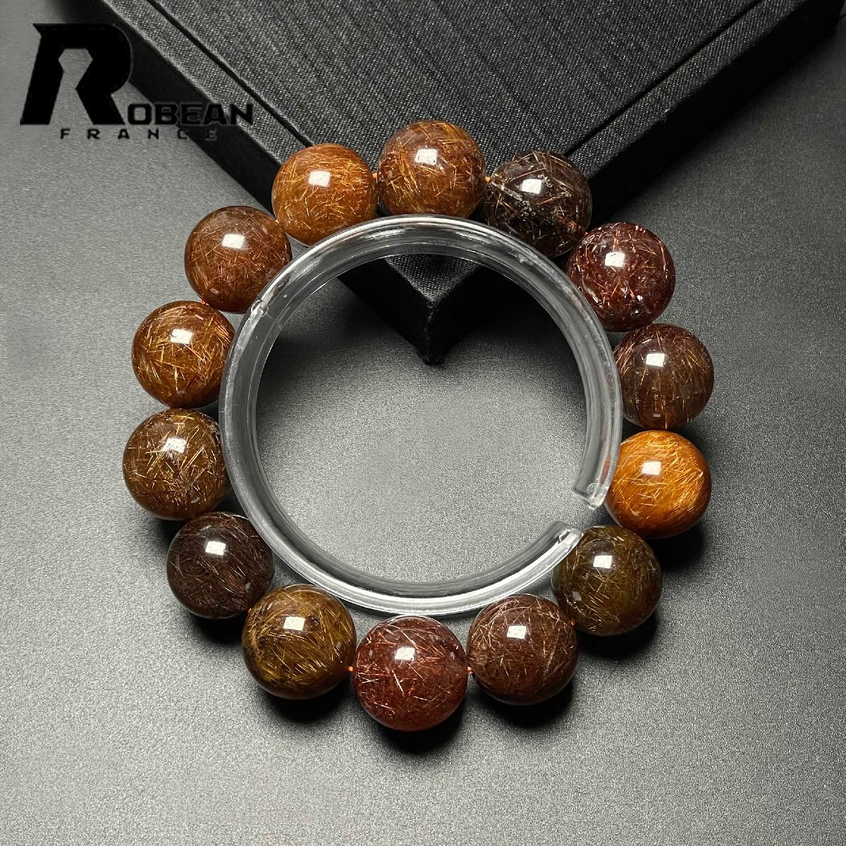 - 上級 EU製 定価22万円★ROBEAN・銅髪ルチルクォーツ★ブレスレット パワーストーン 天然石 綺麗 金運 お守り 16.3-17.1mm M1023829