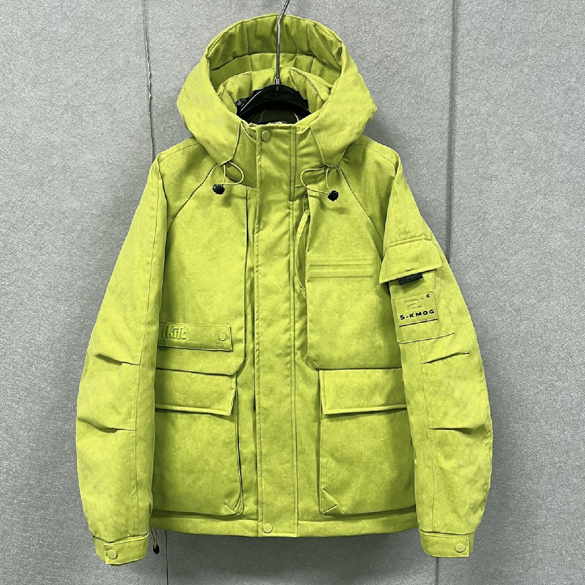 > ダウンジャケット イタリア製造 ダックダウン90% 防寒 防風 刺繍 英字柄 フード付き 個性 アウター カジュアル 街着 ストリート SIZE:XL