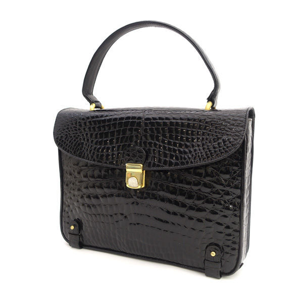 > ★ jollbors NUOVO BIDENTE ハンドバッグ クロコ片押し エナメル レザー ブラック (0220540514)