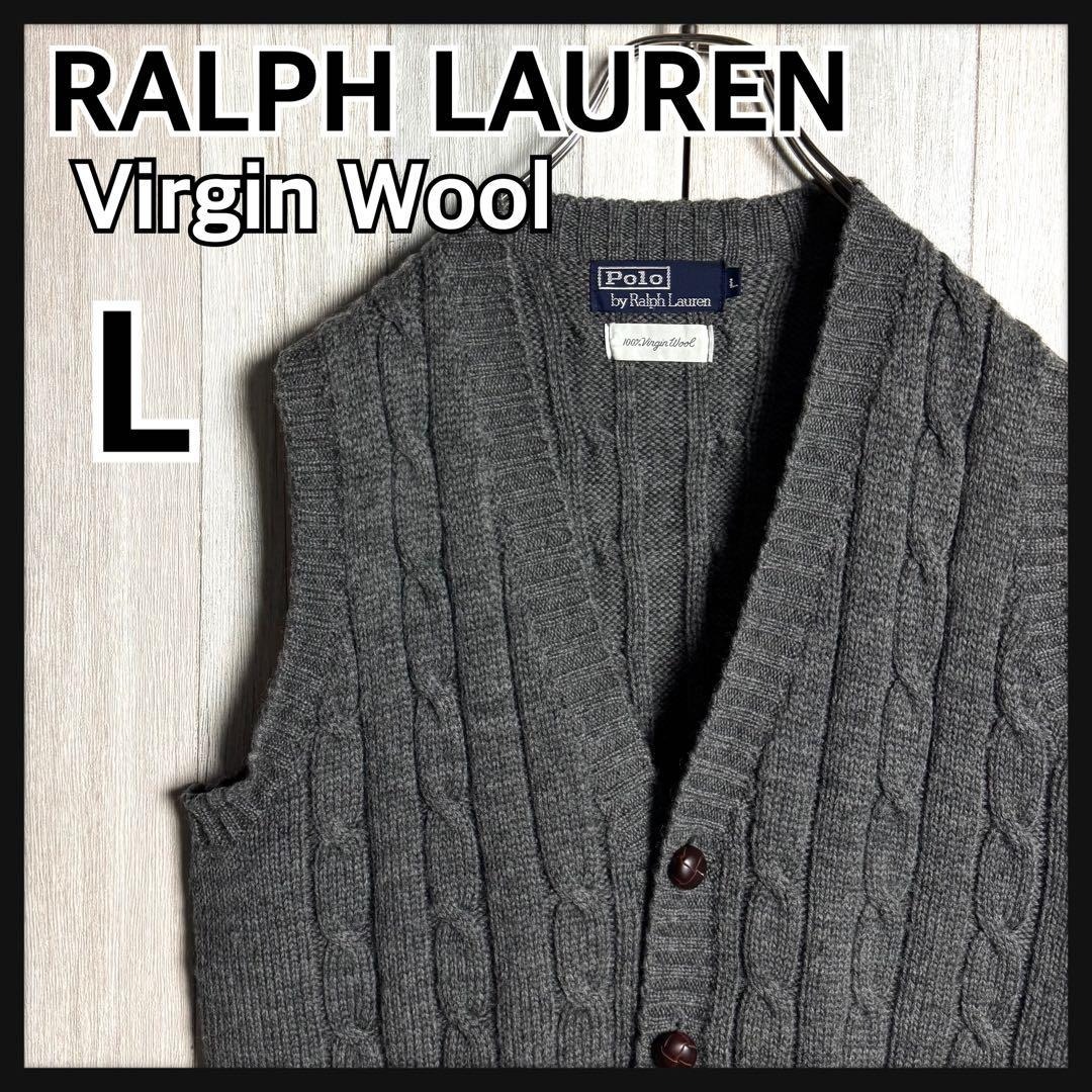 - 3577【希少ヴァージンウール】90s ラルフローレン ケーブルニット ベスト