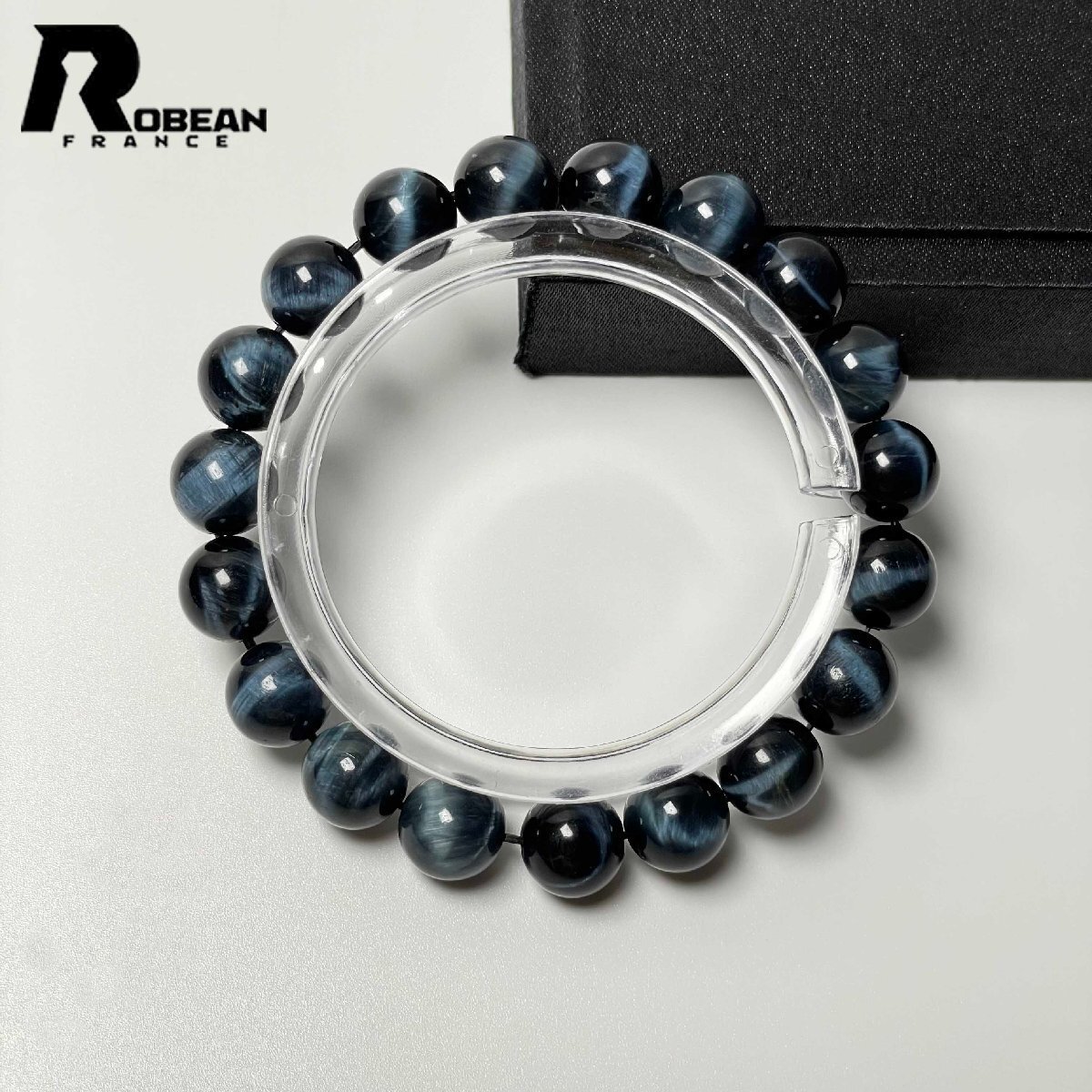 - 絶賛 EU製 定価6万円★ROBEAN・ブルータイガーアイ★猫目 パワーストーン ブレスレット 天然石 きれいめ 成功 幸運 約9.9-10.1mm L0313224