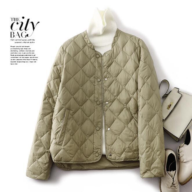 - 新入荷キルティングジャケットレディース中綿コートアウターノーカラーキルティングコート秋冬ライトコートライトダウン防寒M~XLグリーン