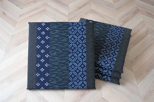 - 新品@日本製 型崩れしにくい固綿座布団同色4枚組/ブルー(国産 至福の触感 手洗いOK 快適 座り心地 綿100% 肌に優しい)