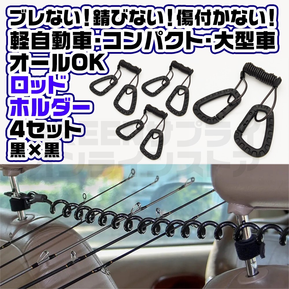 - ロッドホルダー 伸縮自在 車載用 4セット ケーブル カールロープ 釣り竿 黒黒