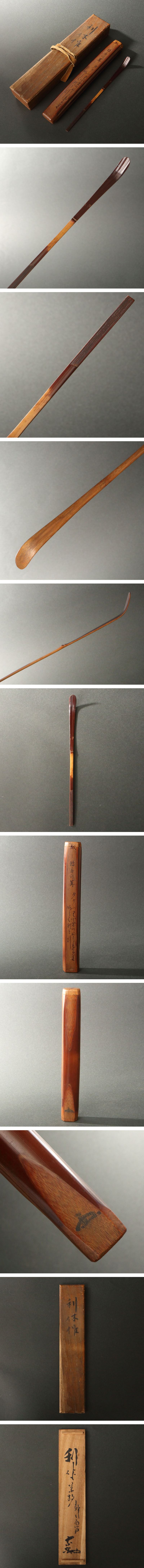 > 委託HK◇千利休 竹茶杓 静々斎(筒)、直斎(箱) 追銘「鵜舟の篝」(茶道具 竹工芸 棗 茶入 薄茶 濃茶 武者小路千家 家元 官休庵 風炉 夏)