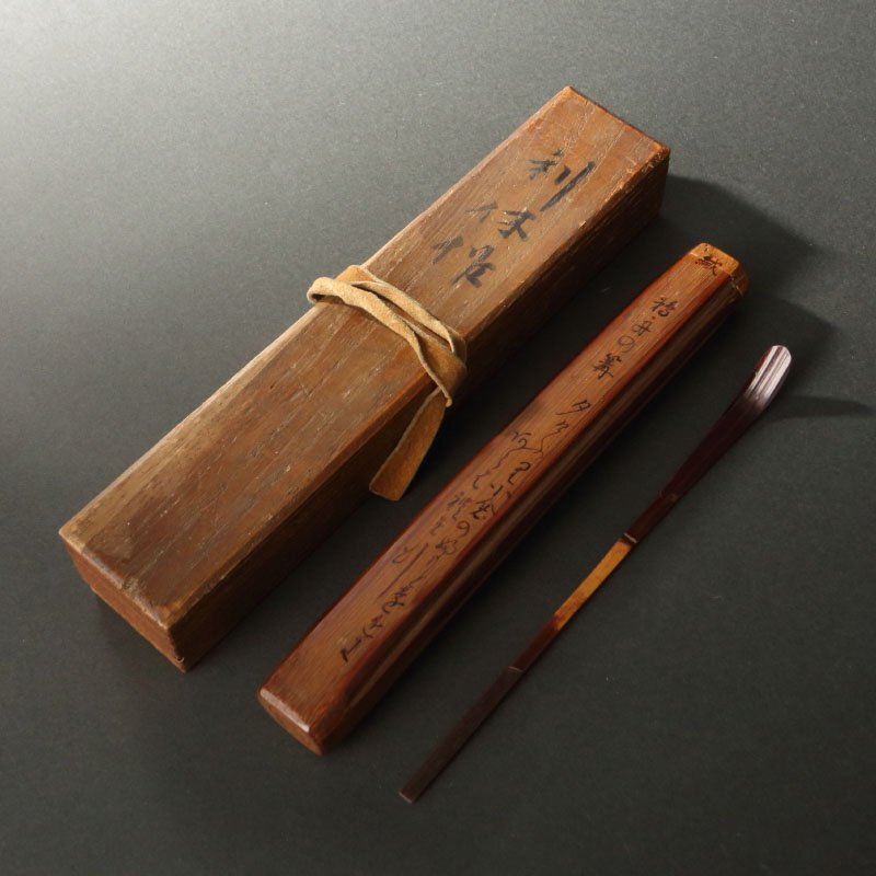 - 委託HK◇千利休 竹茶杓 静々斎(筒)、直斎(箱) 追銘「鵜舟の篝」(茶道具 竹工芸 棗 茶入 薄茶 濃茶 武者小路千家 家元 官休庵 風炉 夏)
