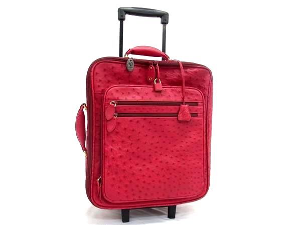 - 1円 ■極上■本物■JRA公認■美品■ オーストリッチ 2輪 キャリーケース キャリーバッグ スーツケース トラベルバッグ レッド系 FP9441