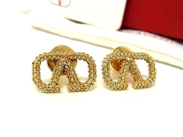- 1円 ■美品■ VALENTINO GARAVANI ヴァレンティノ ガラヴァーニ ラインストーン ピアス アクセサリー ゴールド系×シルバー系 FU7819