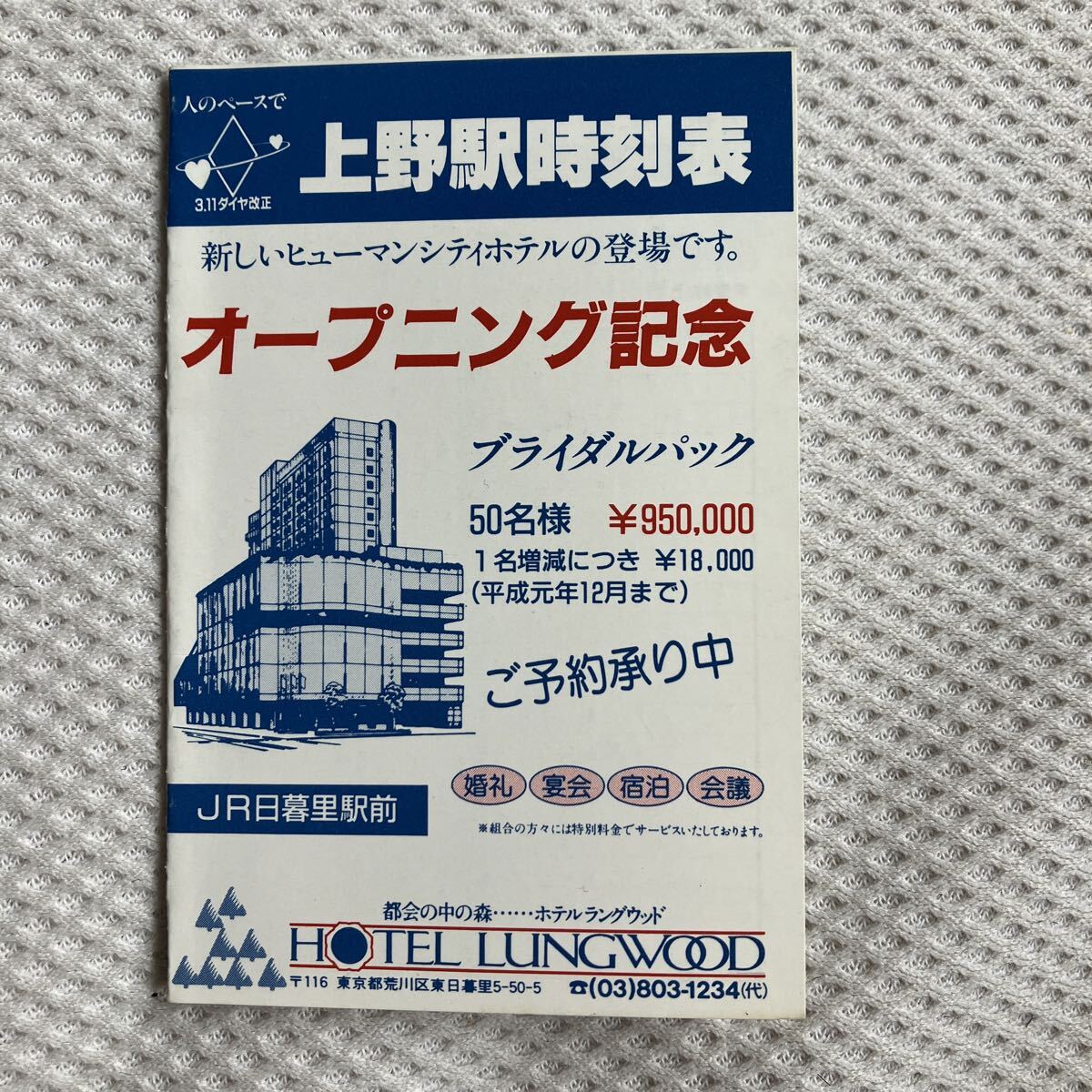 - 【平成元年3月11日改正】上野駅ポケット時間 ホテルラングウッド JR東日本
