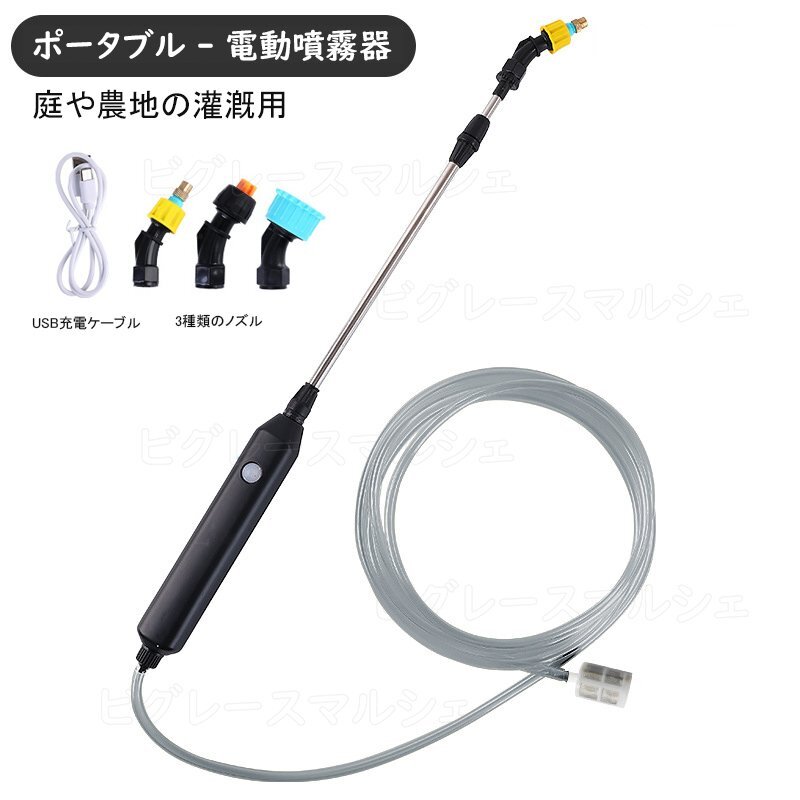 > 噴霧器 電動 電動噴霧器 伸縮 充電式 霧吹き ポータブル Type-C充電 3種類のノズル 吸水ホース 家庭の掃除 園芸水やりなど 2m/3m/5m 1095