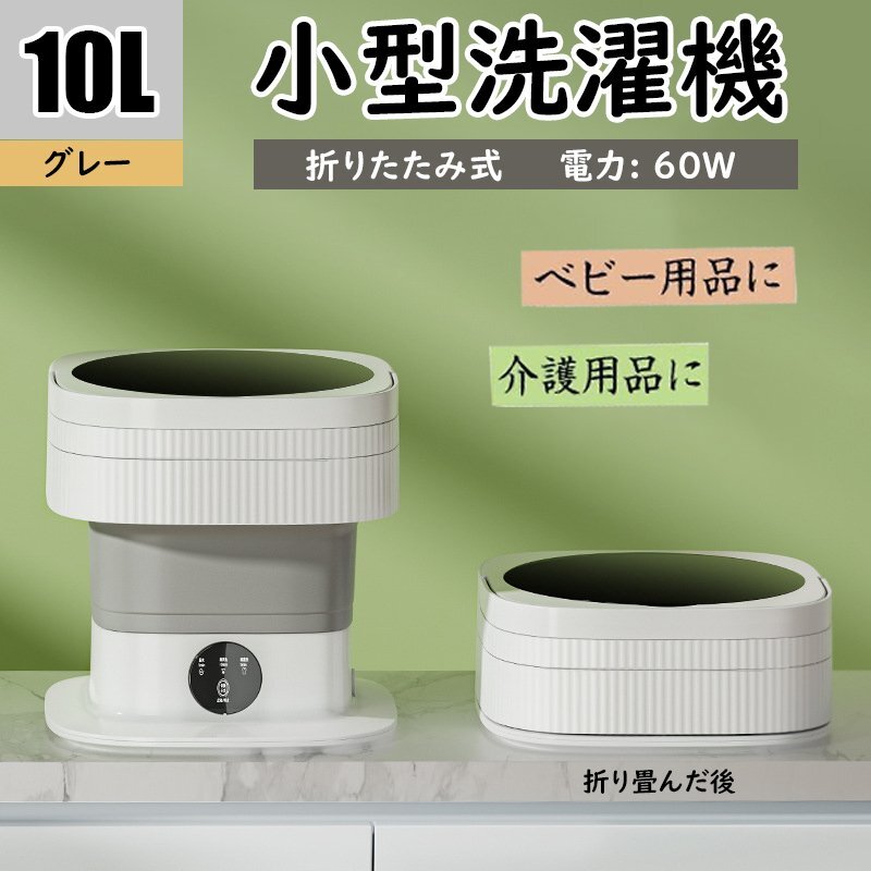 > 小型洗濯機 折りたたみ式 バケツ型洗濯機 室内 コンパクト ミニ 10L 60W 脱水 ベビー用品 介護用品 高機能 収納 靴下 下着 グレー 806gy