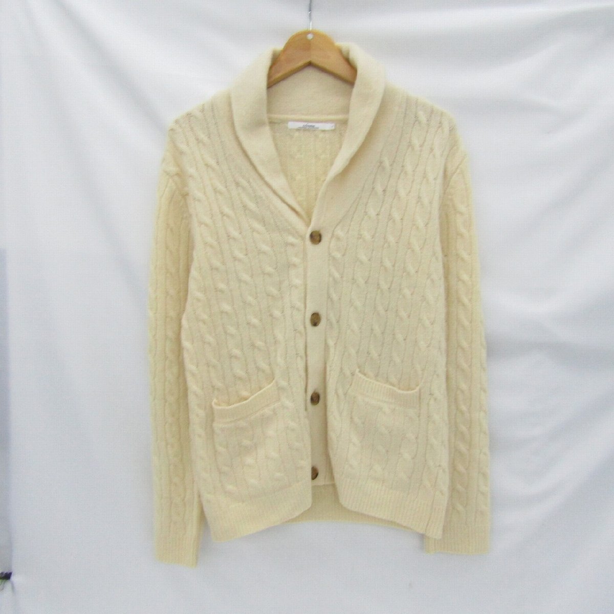> 1円~【美品】ジャーナルスタンダード メンズ ショールカラー ケーブル ニットカーディガン カシミア混合 ホワイト系 S 802162300 1126