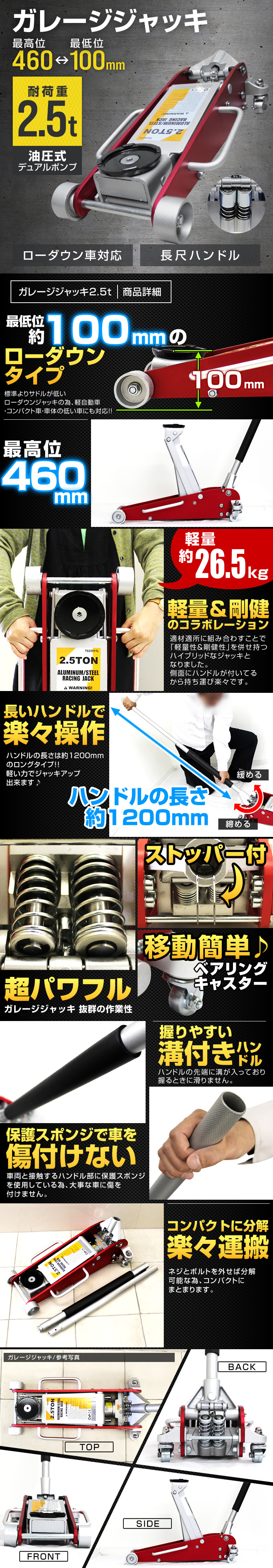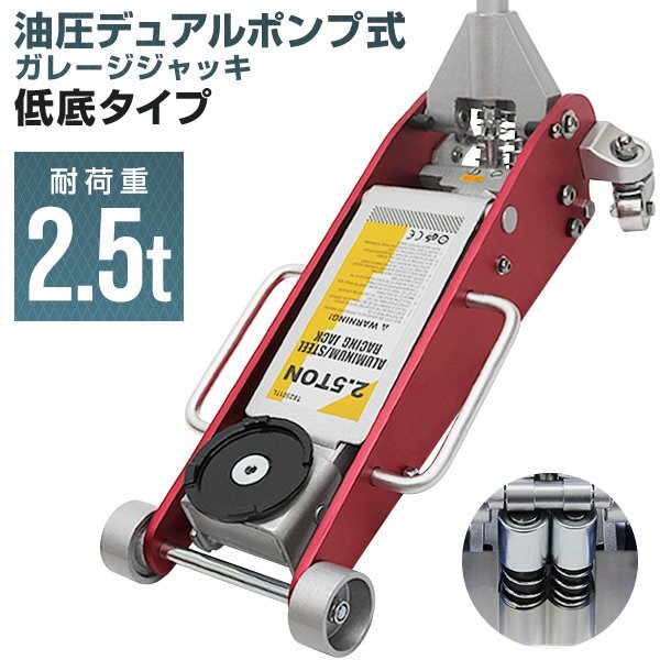 - 【2.5トン】 フロアジャッキ ガレージジャッキ 2.5t ローダウン 油圧式 ハイブリッド アルミ デュアルポンプ タイヤ交換 整備 ジャッキ