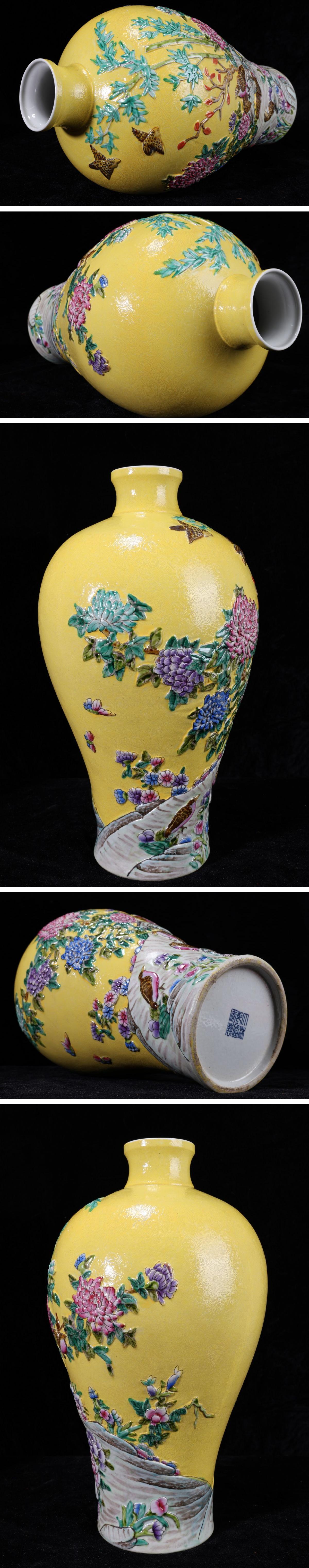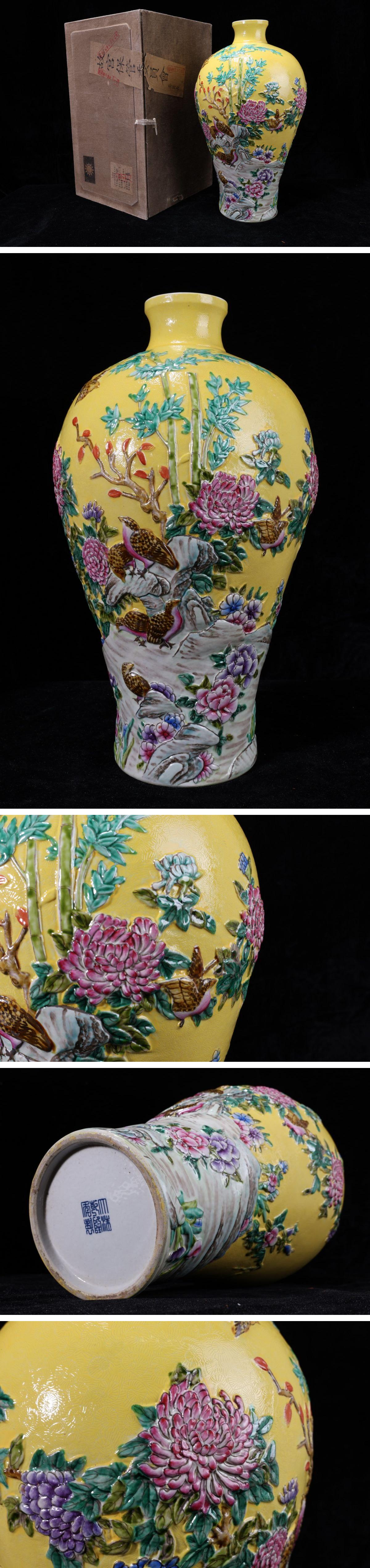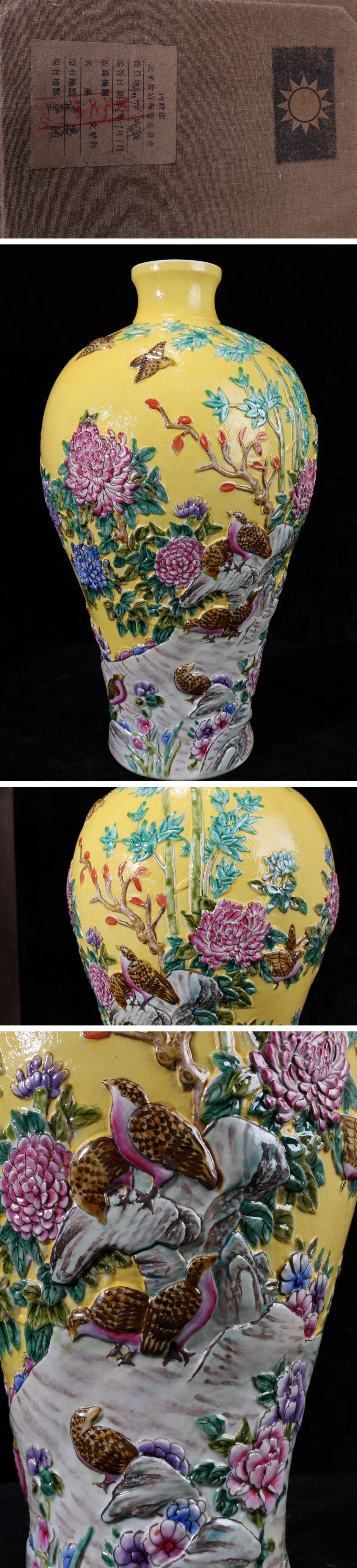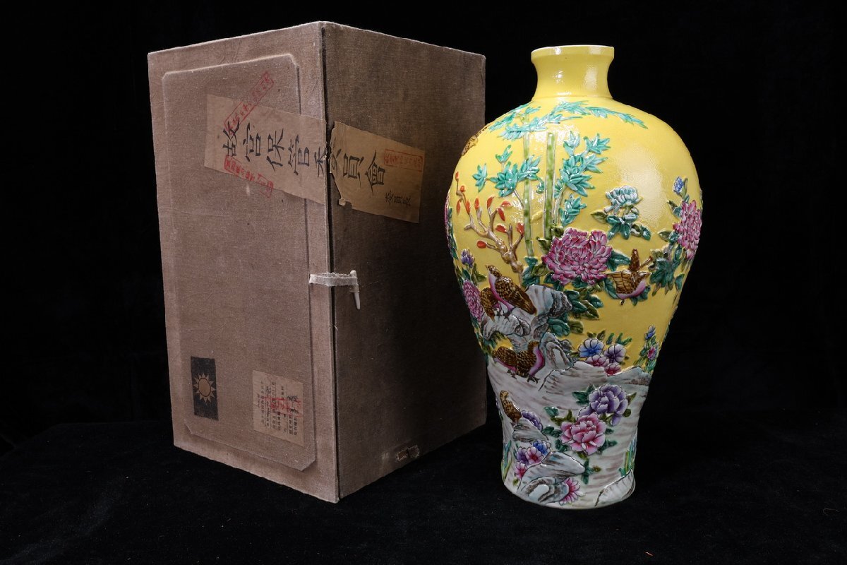 - 【珍品堂】1円から N70-V5 中国大清乾隆年製 故宮 時代物 花鳥色絵壺 繊細絵付 花瓶 高39.5㎝ 大花瓶 共箱 木箱 鑑賞品 骨董品 古美術 美品