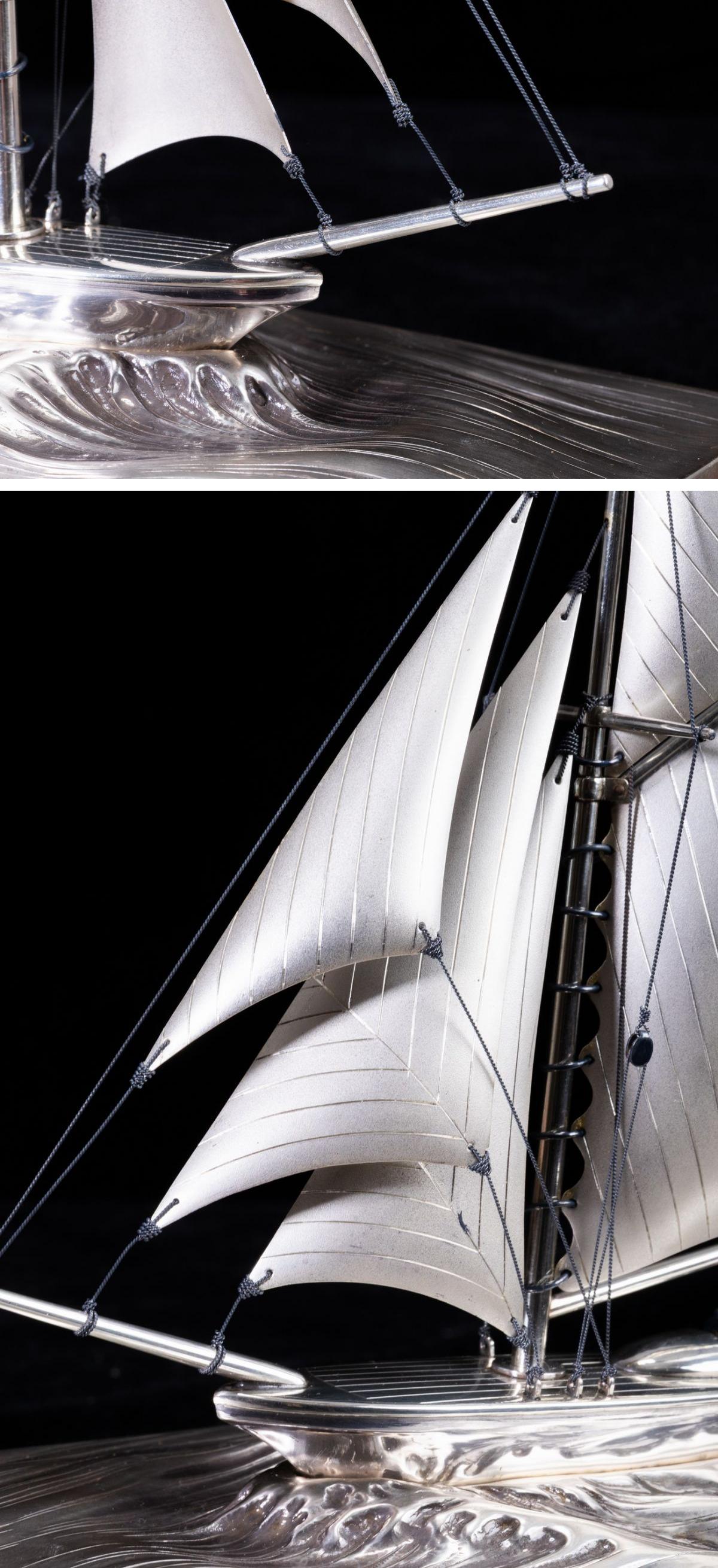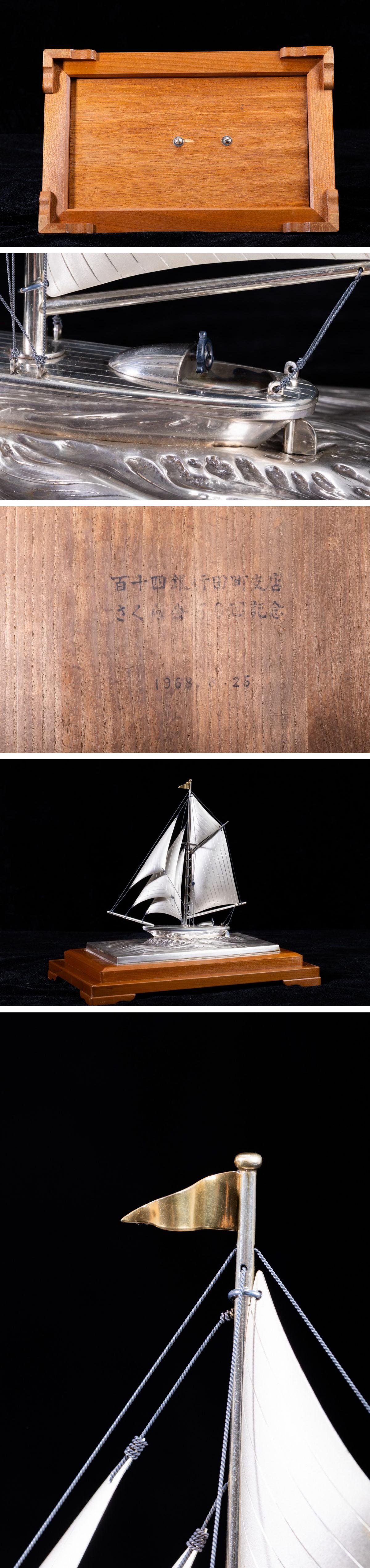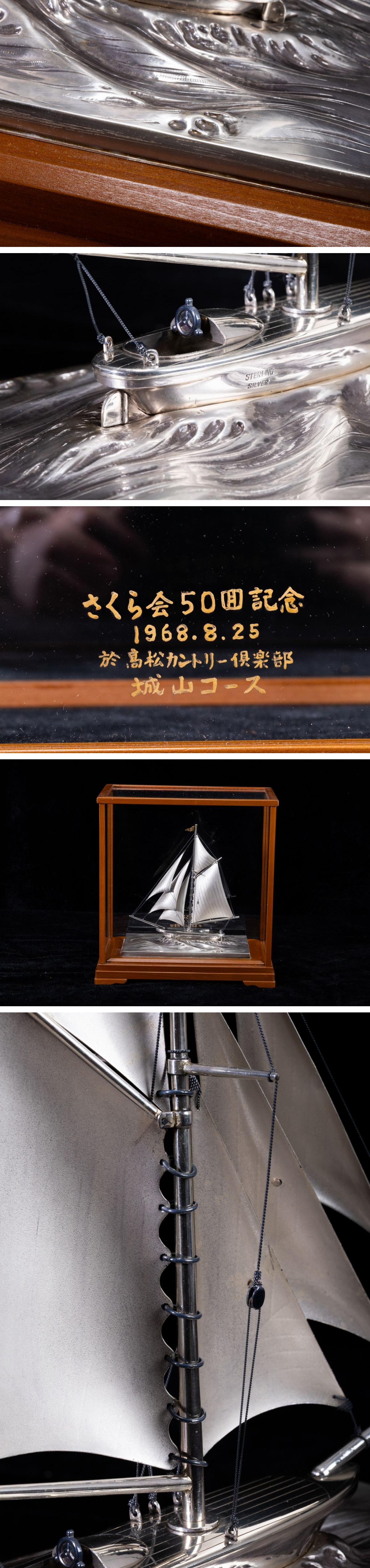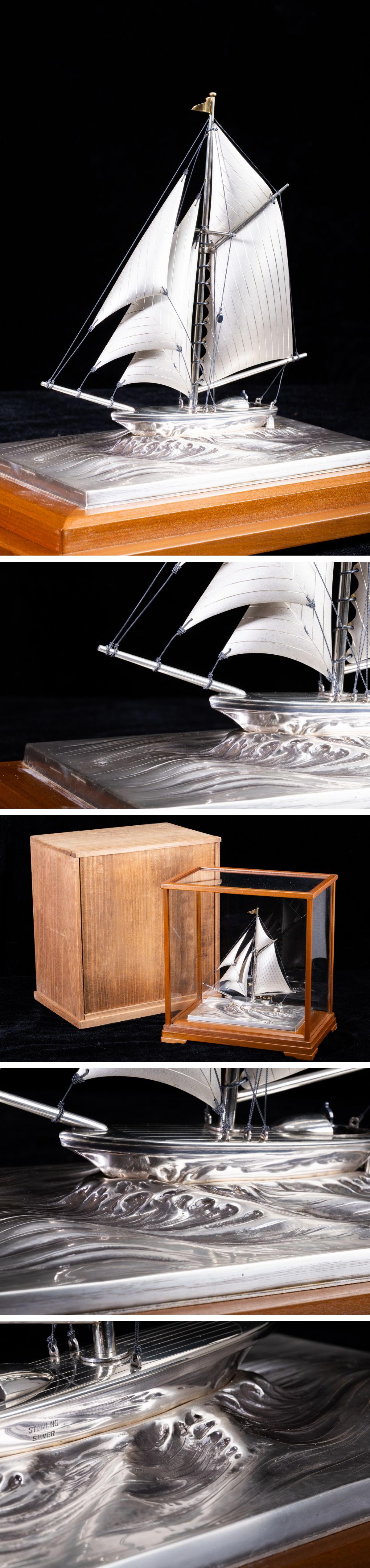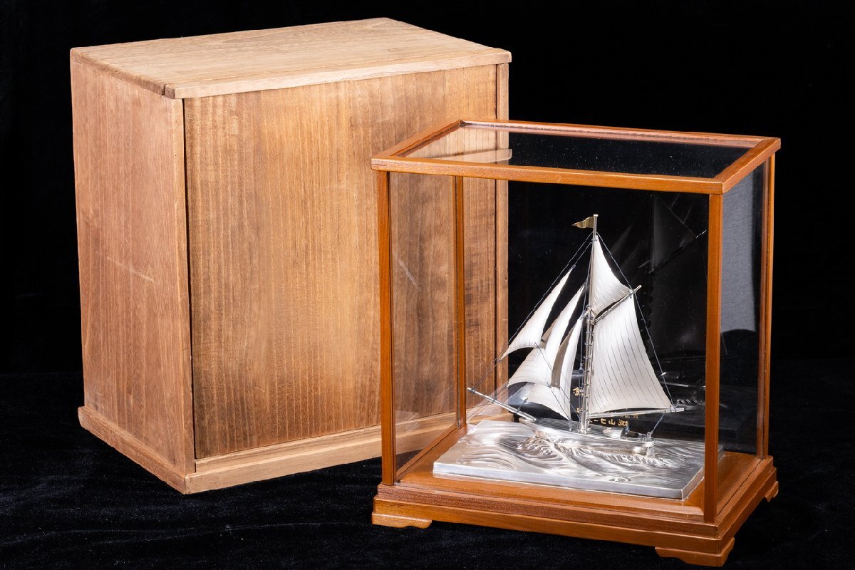 - 【珍品堂】1円から N56-V18 銀製 帆 シルバー 船 sliver 銀細工 ケース付 金彩 重1.86kg 共箱 木箱 記念品 工芸品 鑑賞品 古美術 骨董品