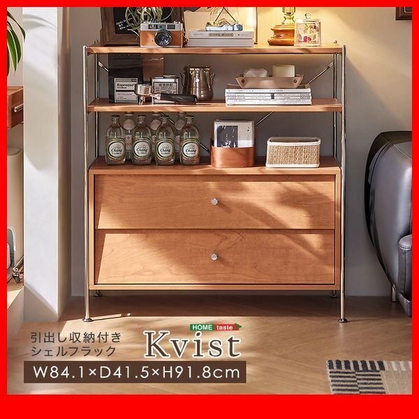 > 棚★新品/引出し収納付き シェルフラック/スタイリッシュなデザイン 大容量収納 見せる隠す収納/ナチュラル/zz