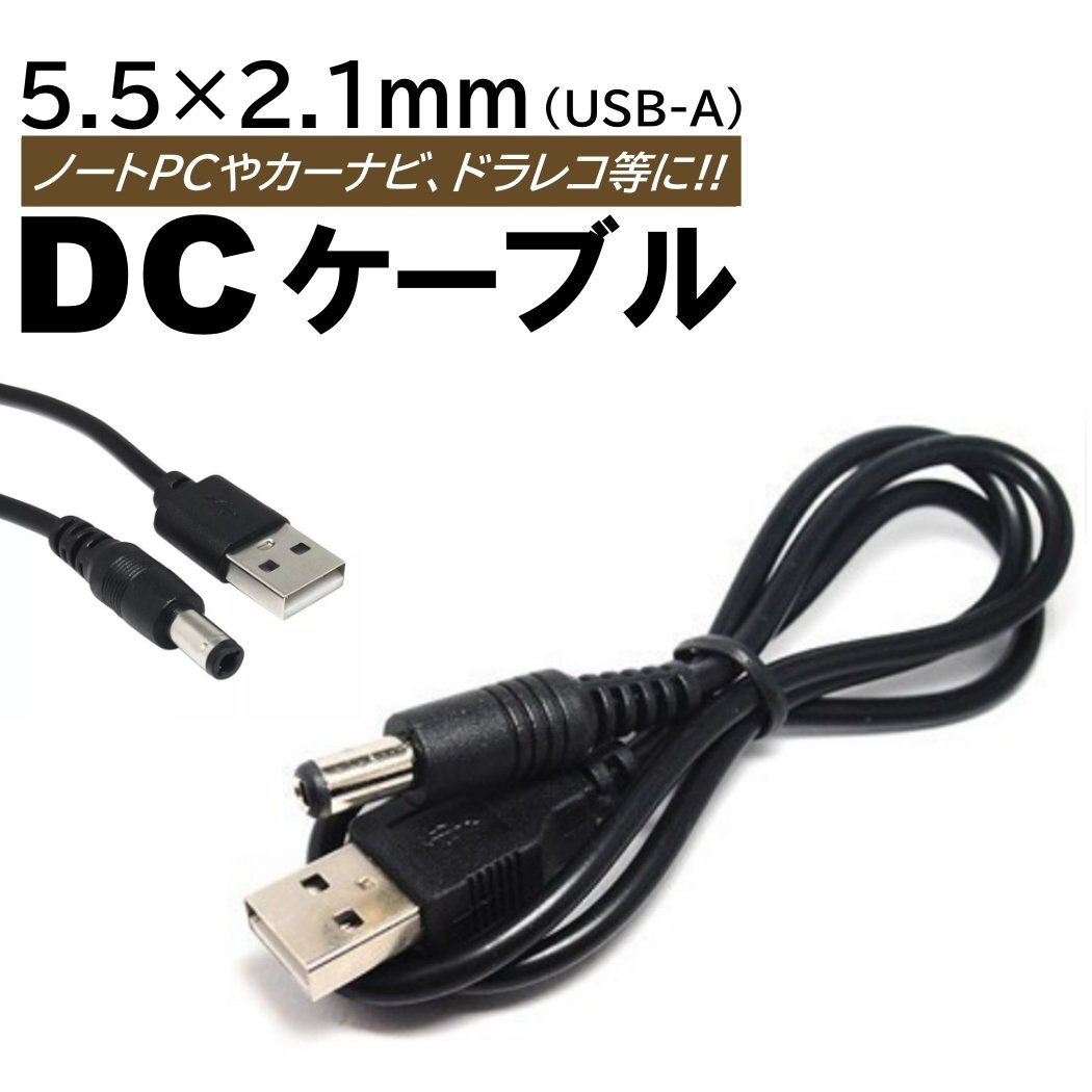 > USB DC ケーブル 外径5.5mm 内径2.1mm 全長1m 5V 2A 対応 DCプラグ カーナビ ACアダプタ 充電 ノートパソコン ルーター HDD