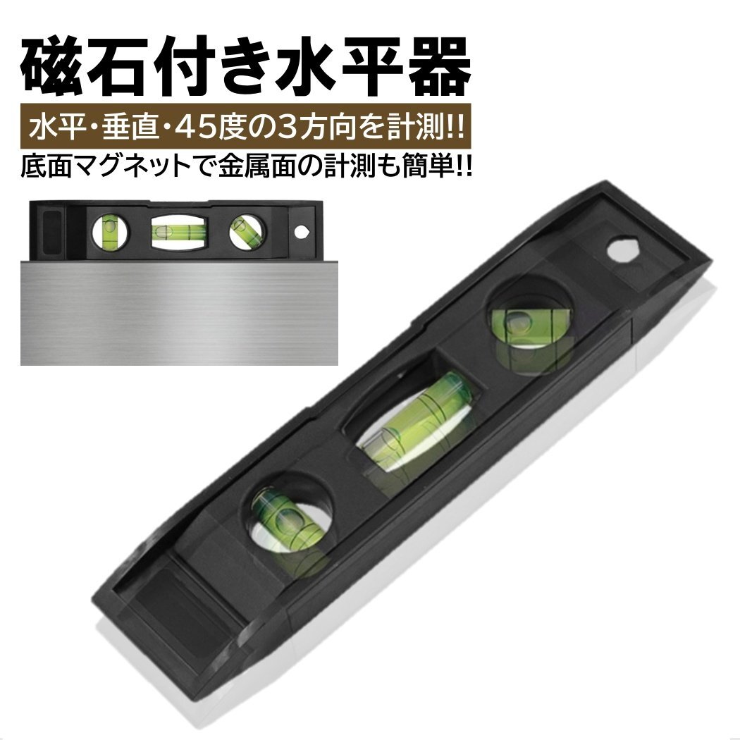 - 水平器 小型 軽量 マグネット プラスチック 水準器 3方向 持ち運び簡単 コンパクト DIY 磁石つき 便利