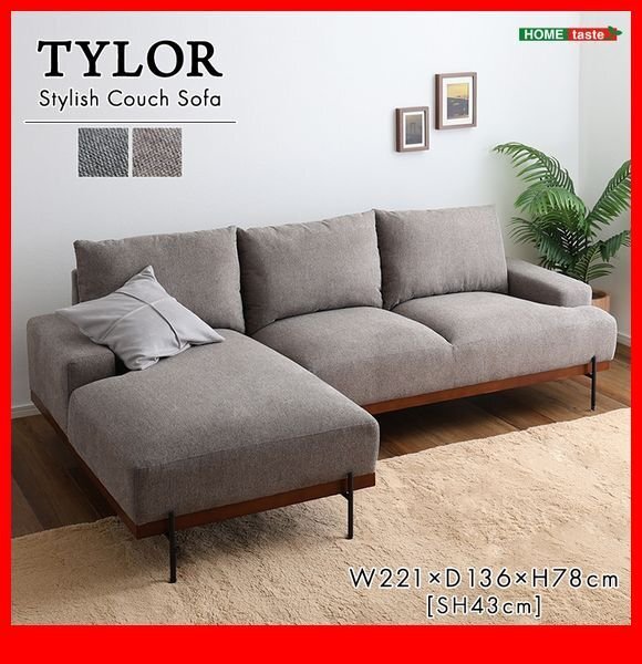 > ソファ★新品/スチール脚がスタイリッシュな3人掛けカウチソファ/ベージュ グレー/zz