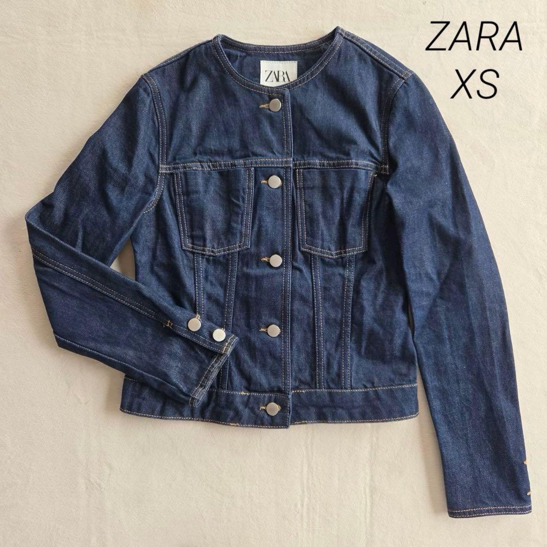 - 美品ザラ ZARA ノーカラー デニムジャケット XS インディゴブルー