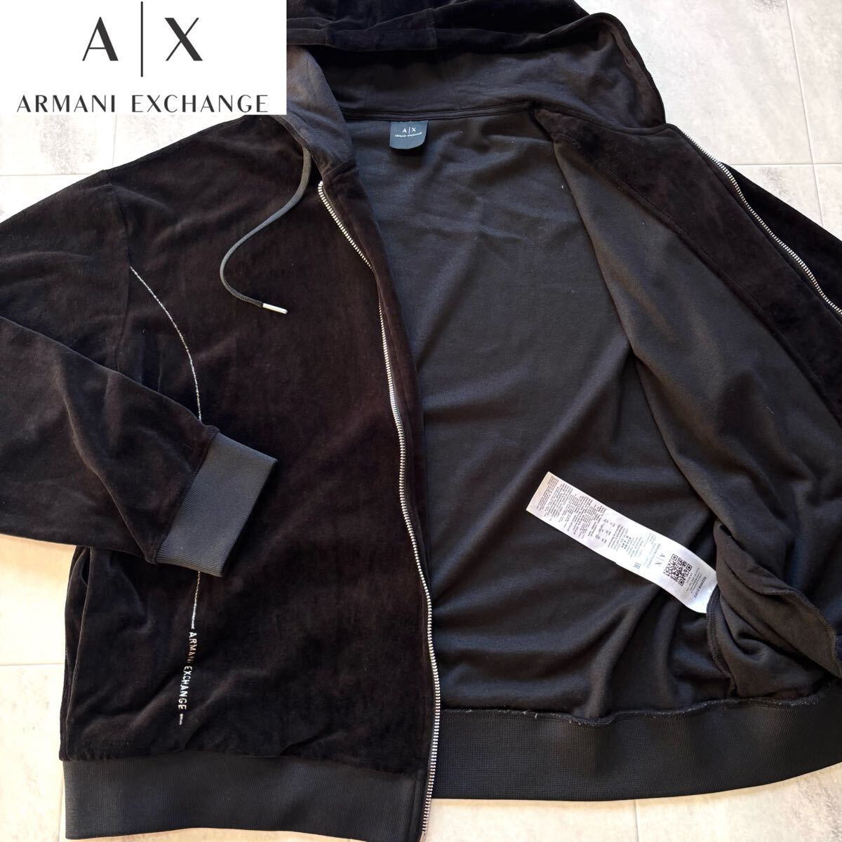 - 【極美品 XL-XXL】アルマーニ エクスチェンジ ARMANI ベルベット ベロア ジップ パーカー ジャケット ブルゾン ブラック 黒 ダブルジップ