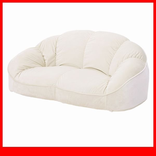 > ソファ★新品/大人かわいいインテリア ローソファ 2人掛け/キュートなフォルム コンパクト ベロア調生地 安心の日本製/白系 アイボリー/a4
