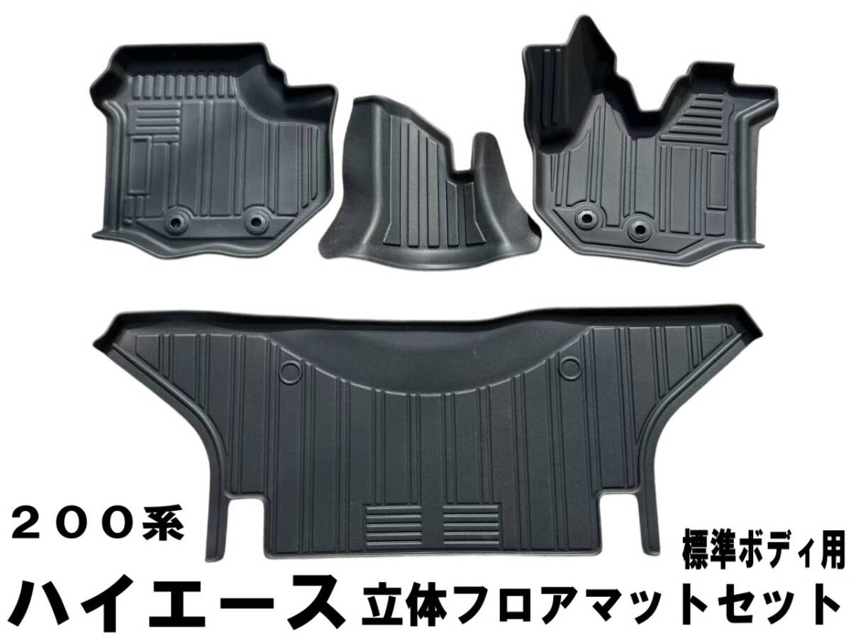 > 【即納】200系 ハイエース 標準ボディ 3D フロント リア セット 立体 フロアマット TPE素材 レジアスエース 新品 丸洗いOK