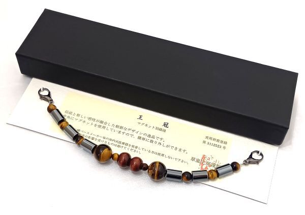 - ①◆羽織紐◆翠嵐工房謹製 王冠 マグネット羽織紐 タイガーアイ? 全長約22.5cm 総重量約40.2g 共箱 詳細不明 長期保管品