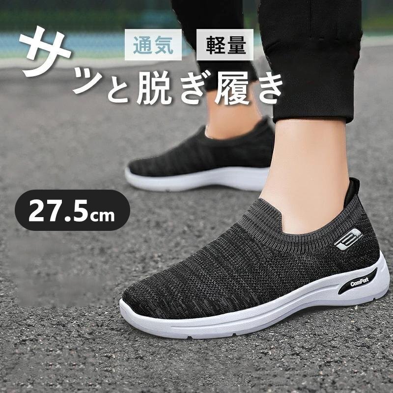 > スリッポン スニーカー メンズ 靴 ウォーキング ナースシューズ 冬 黒 疲れにくい おしゃれ ウォーキング普段履き上履き大人紐なし 27.5cm