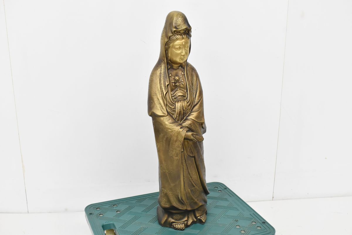 - ●直接引取限定● 1円~ 観音菩薩像 立像 観音様 仏像 置物 金属製 オブジェ 仏教美術 (1298 1124M2)