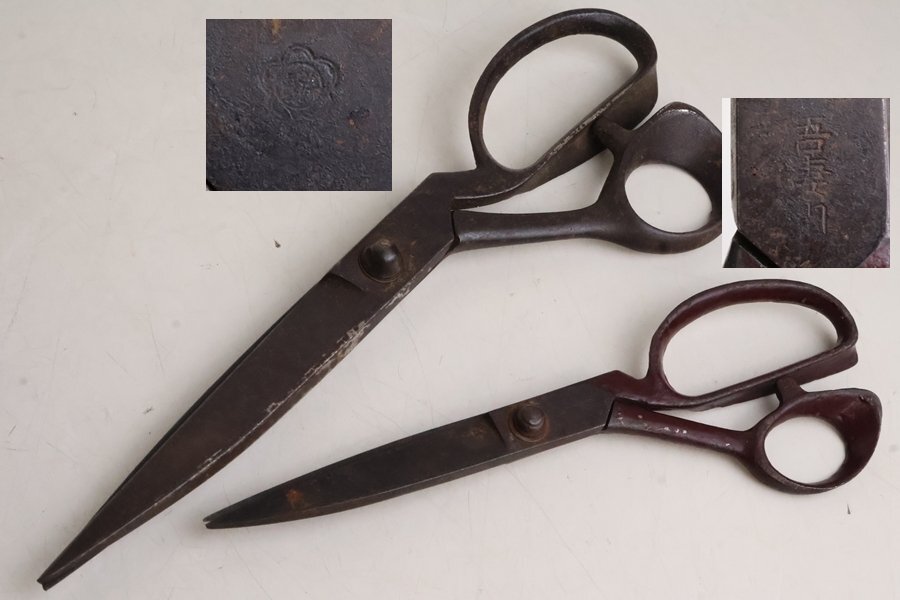 - TB526裁ちばさみ 2点◇在銘/吾妻川/鉄製/小型/羅紗切り鋏/ラシャ切鋏/洋裁ばさみ/布切/仕立て/手芸用品/和裁/高級/特製/古道具タグボート
